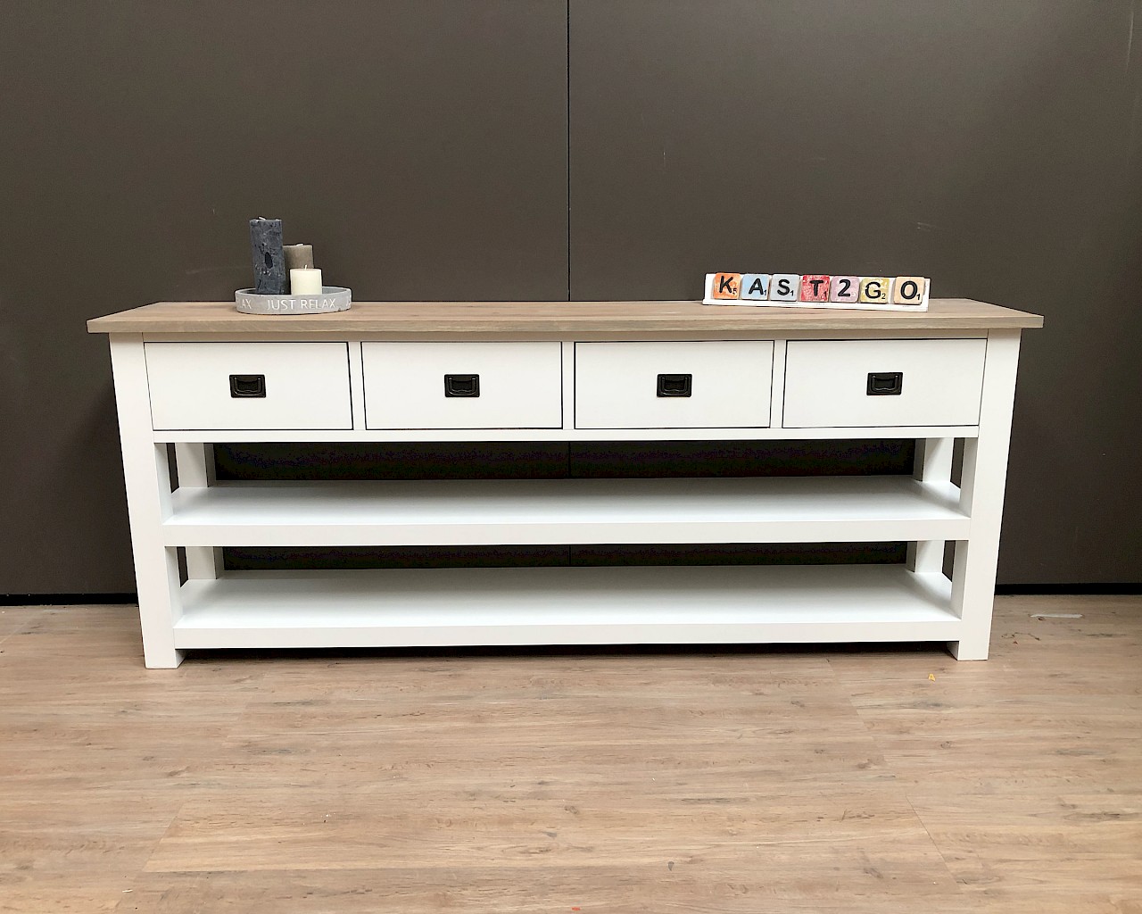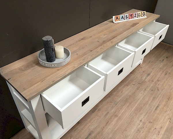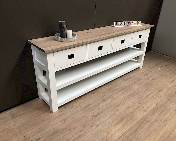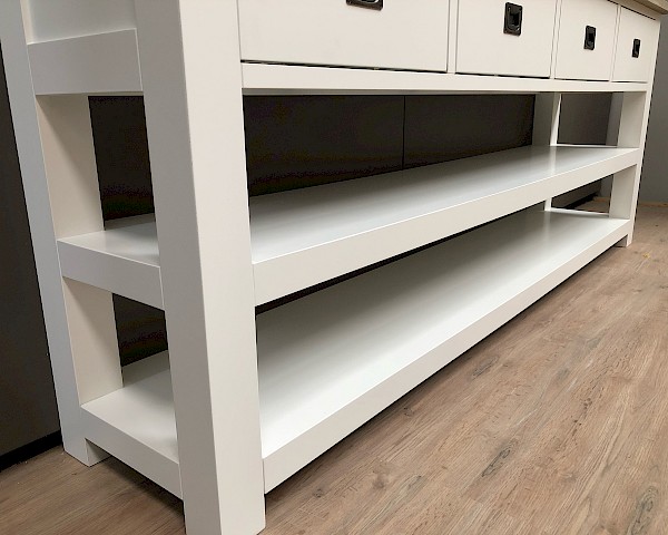 Leuke strakke sidetable, in de maat van 200cm breed. Maar ook verkrijgbaar in  100-120-140-160 of 180 breed.