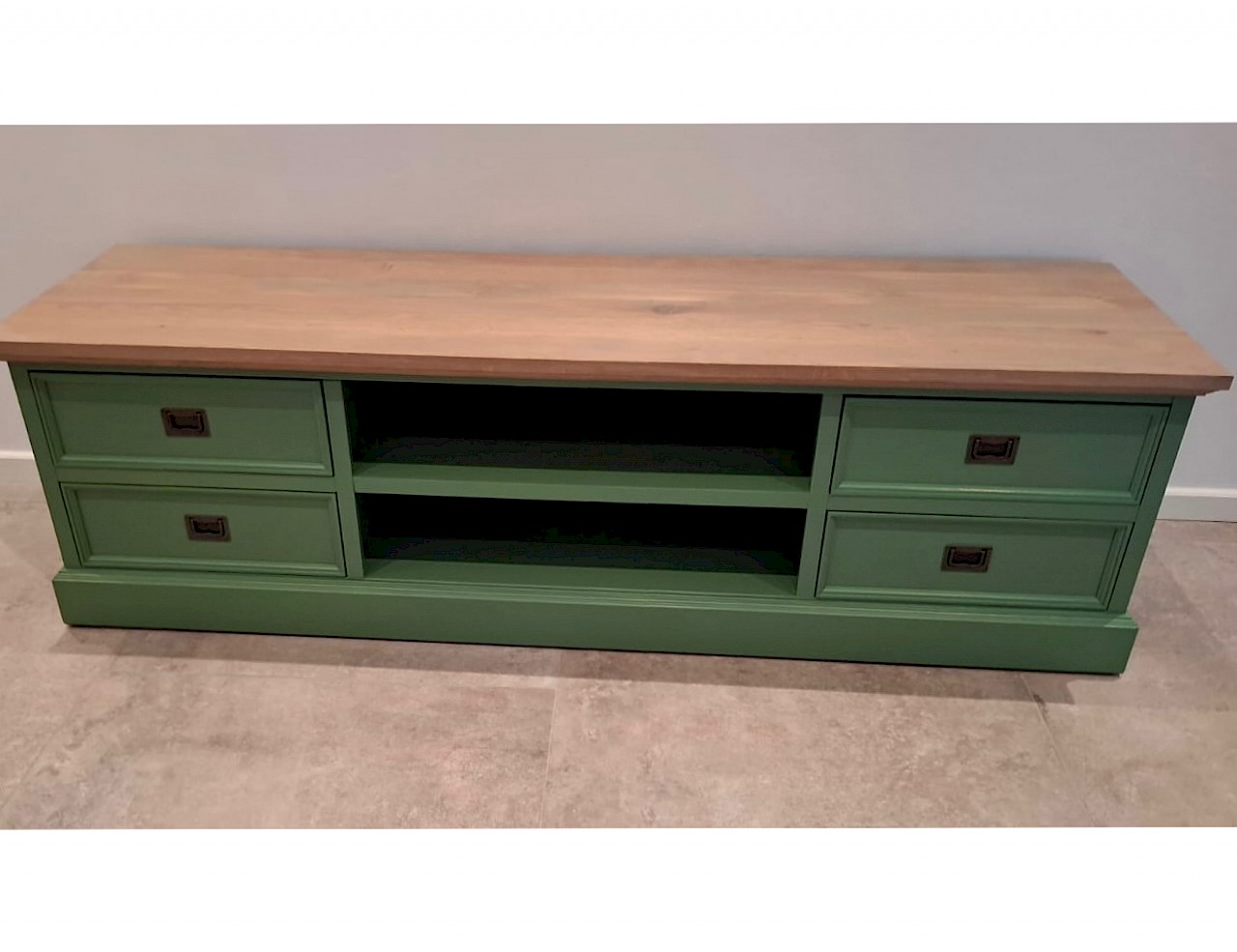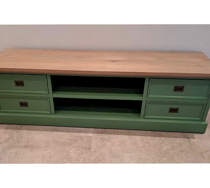 Glad gespoten TVmeubel in het RAL6011. Kan in iedere gewenste RAL-kleur.