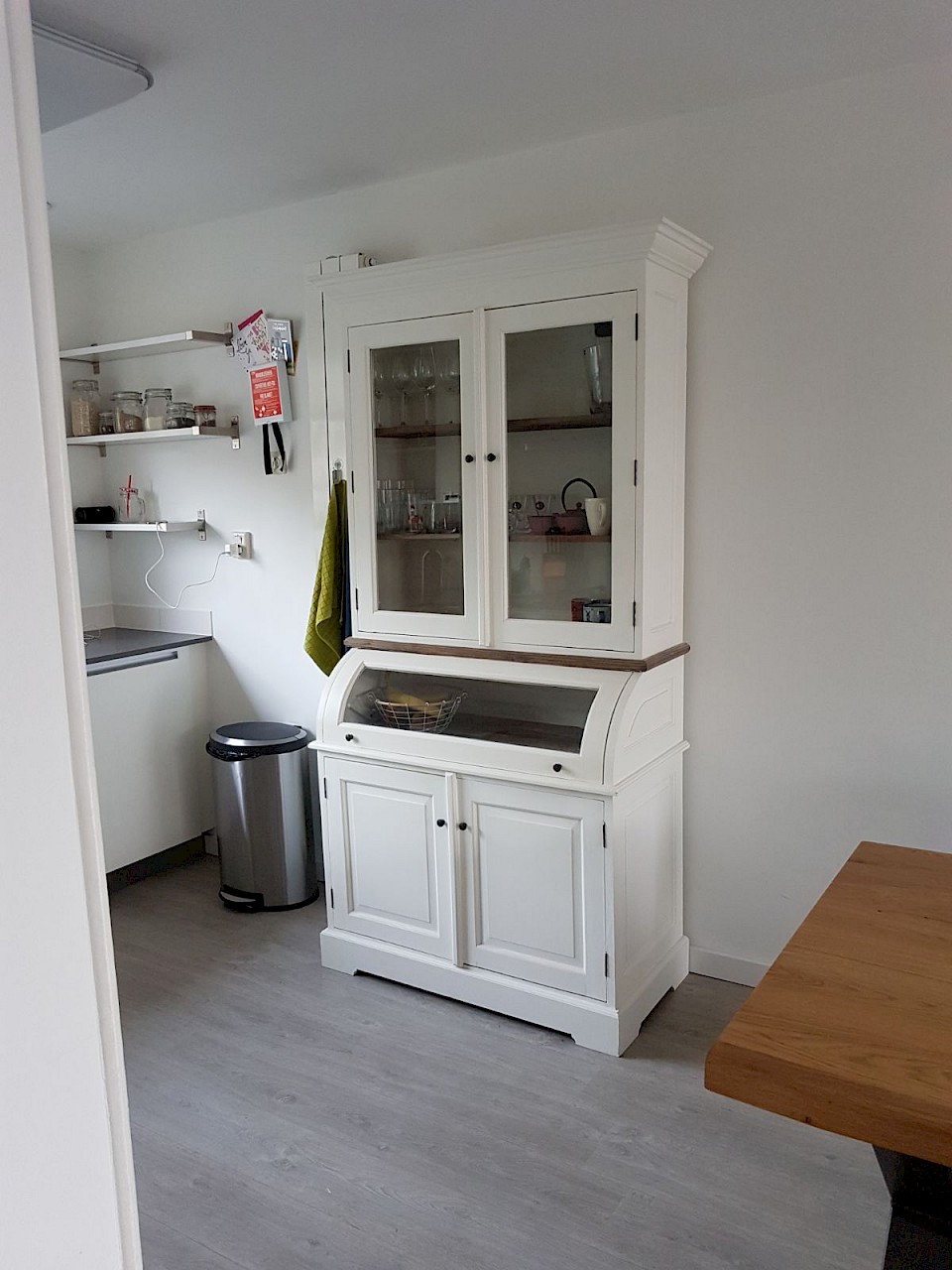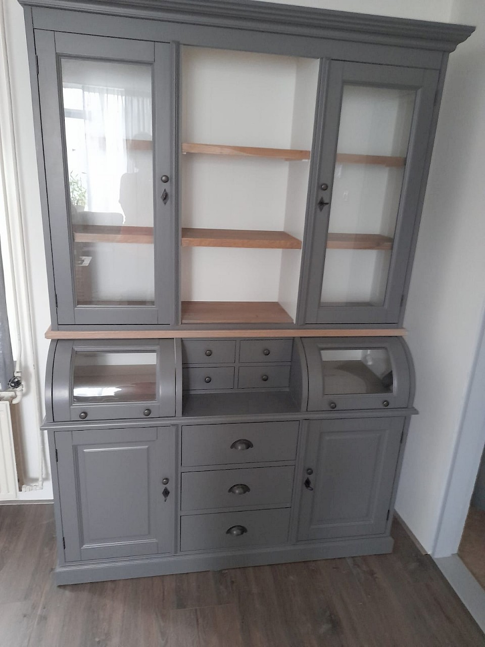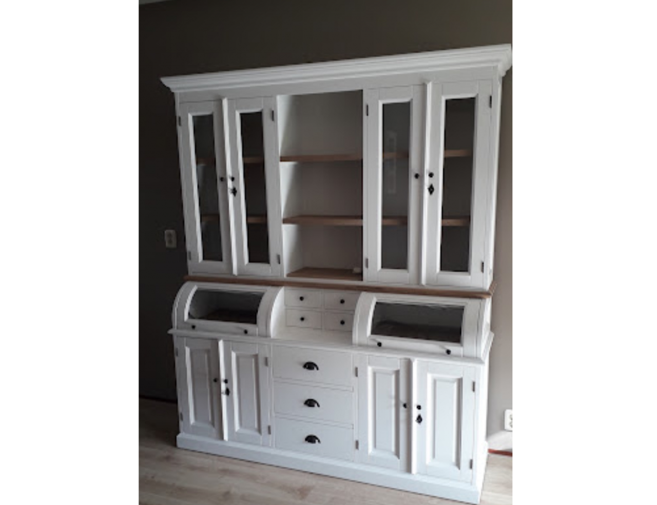 Een geweldige mooie kast hij staat te pronken in de kamer. Een perfecte service ,vriendelijk personeel (jammer dat ze geen tijd voor een kopje koffie hadden na zo,n lange rit) en stipt op tijd.
