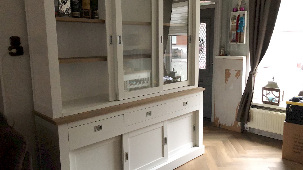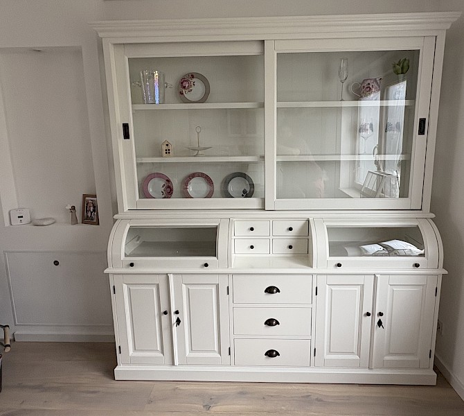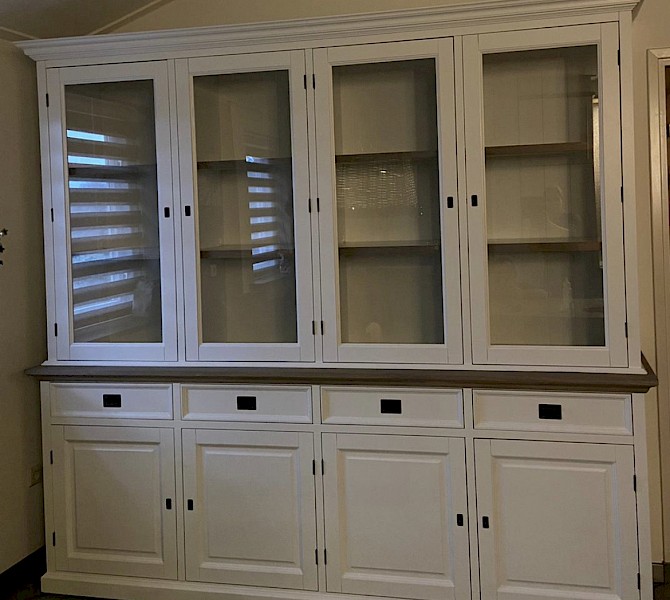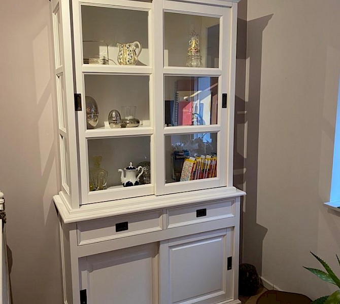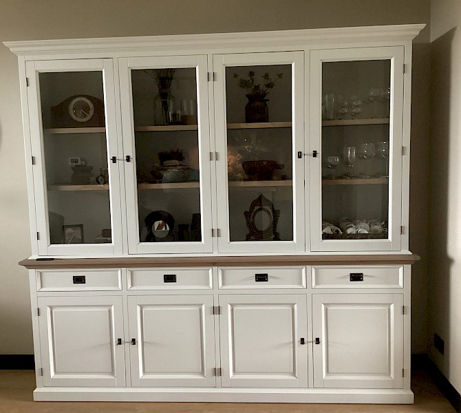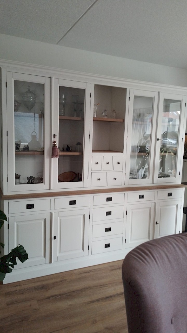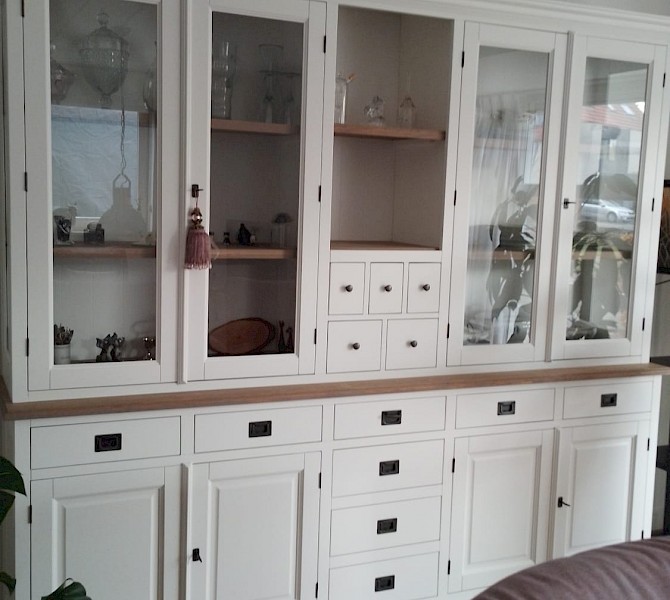 Perfecte service en goede kwaliteit. Toen de vitrinekast geleverd werd viel het bestaande dressoir in het niets. Met de maten van het oude dressoir is een nieuwe dressoir op maat gemaakt en past alles weer bij elkaar.
