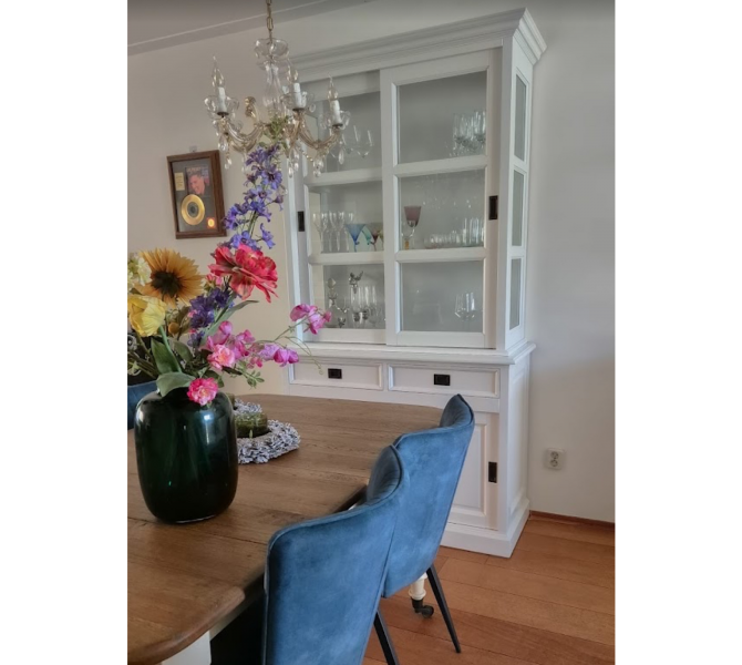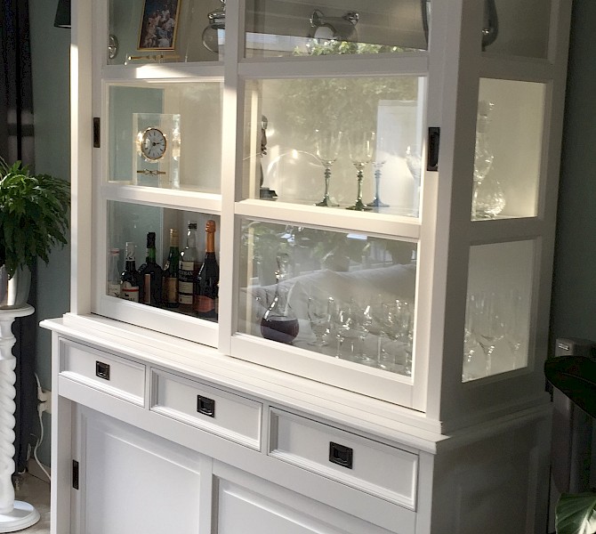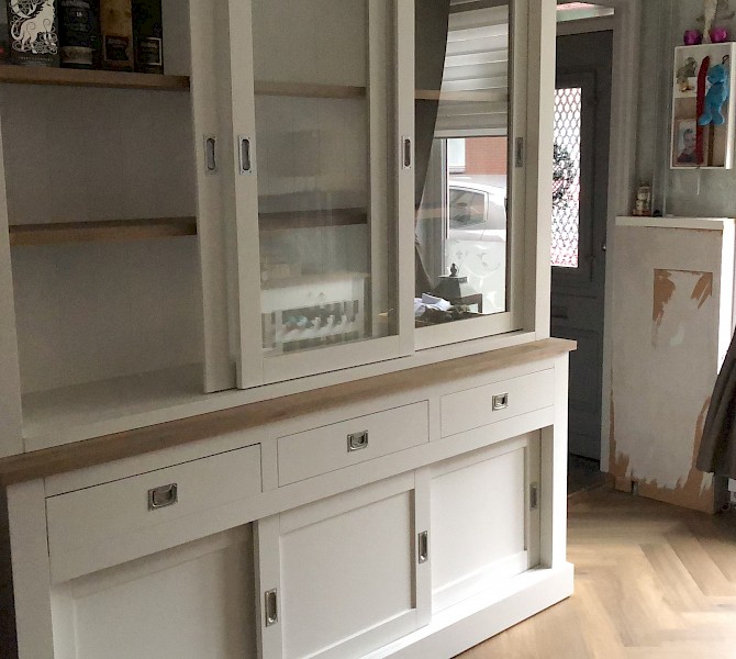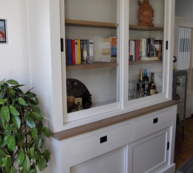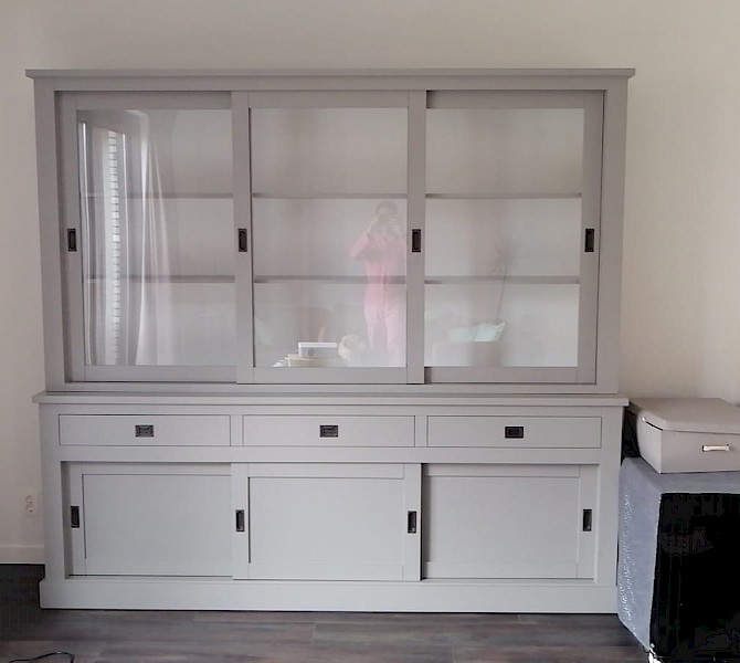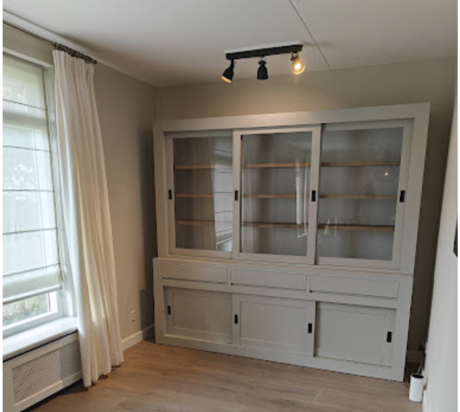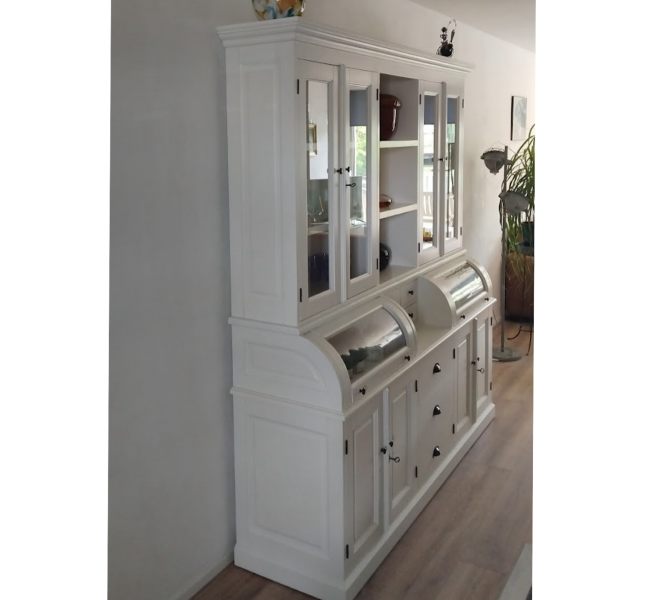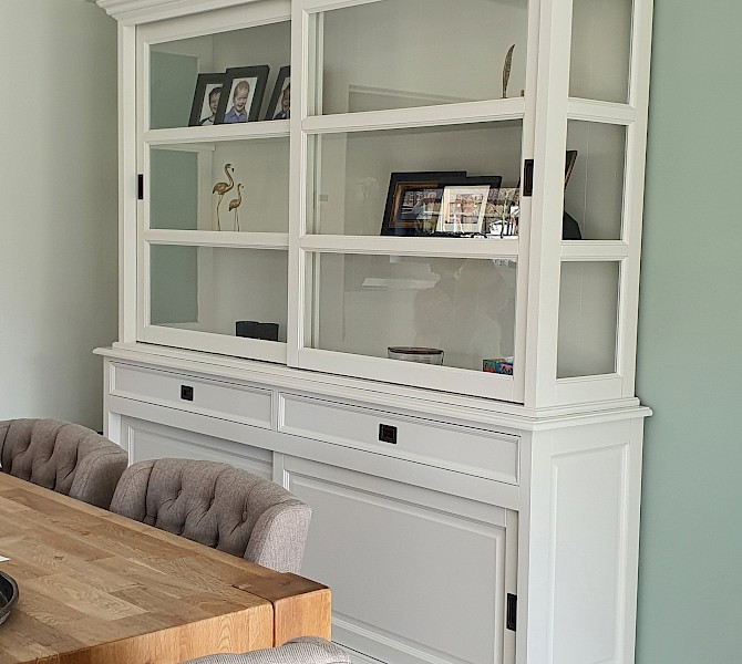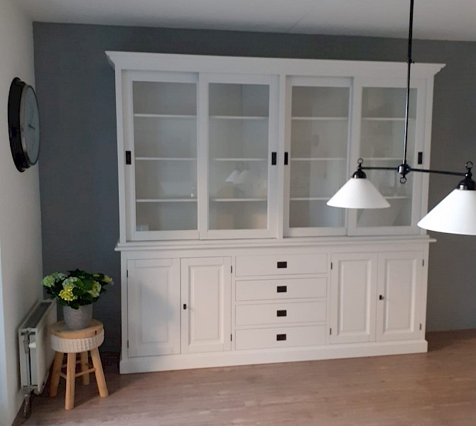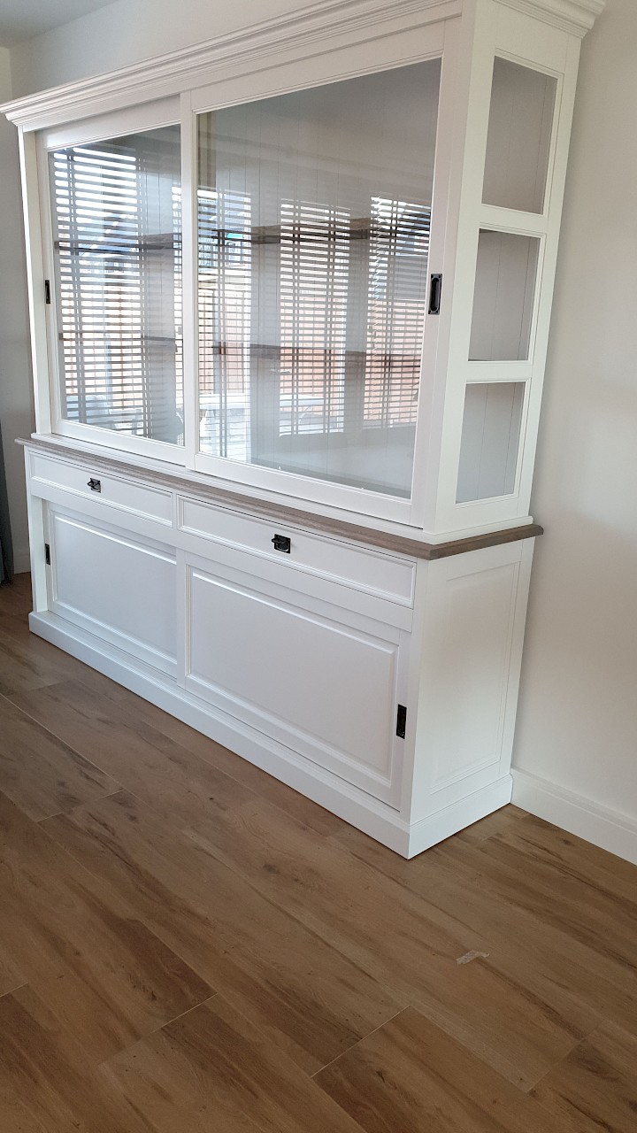 Perfecte service en goede kwaliteit. Toen de vitrinekast geleverd werd viel het bestaande dressoir in het niets. Met de maten van het oude dressoir is een nieuwe dressoir op maat gemaakt en past alles weer bij elkaar.