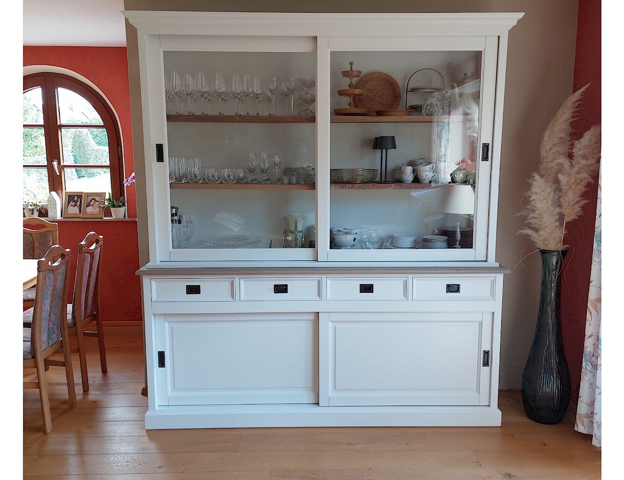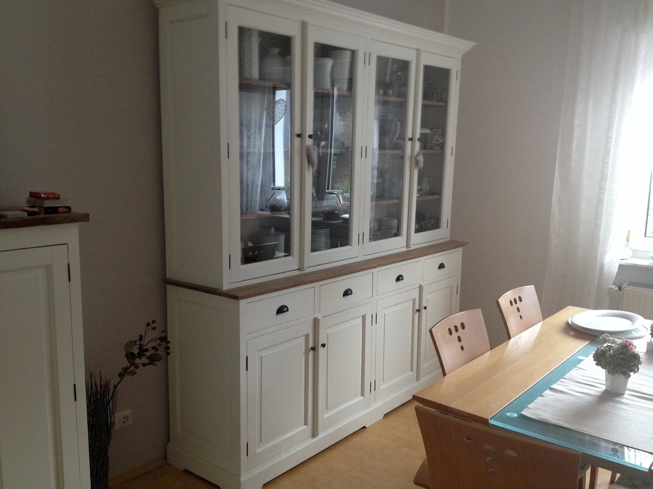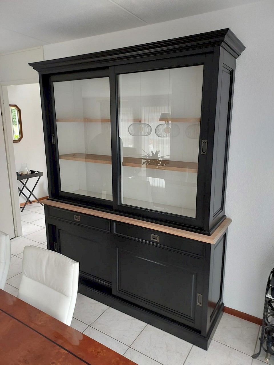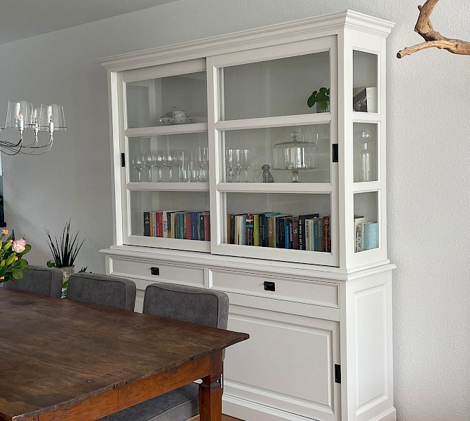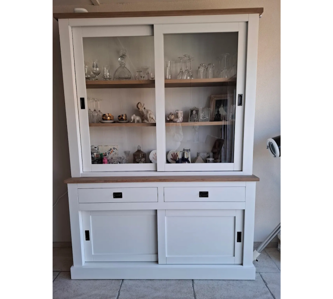 Perfecte service en goede kwaliteit. Toen de vitrinekast geleverd werd viel het bestaande dressoir in het niets. Met de maten van het oude dressoir is een nieuwe dressoir op maat gemaakt en past alles weer bij elkaar.