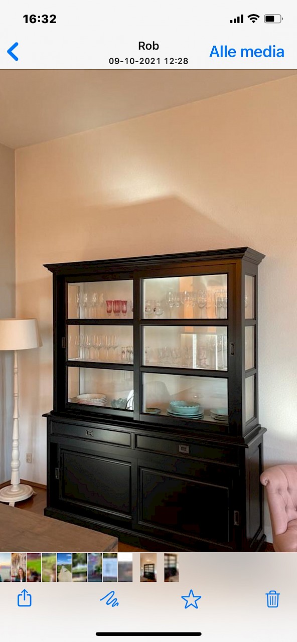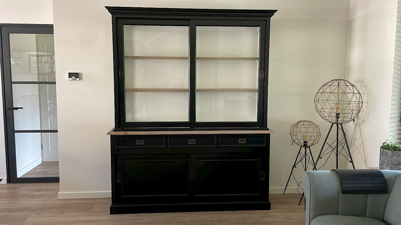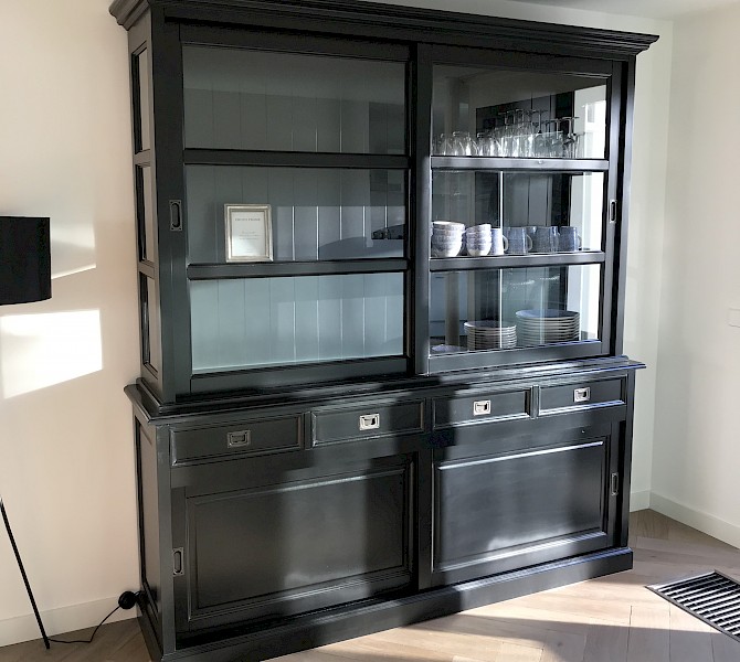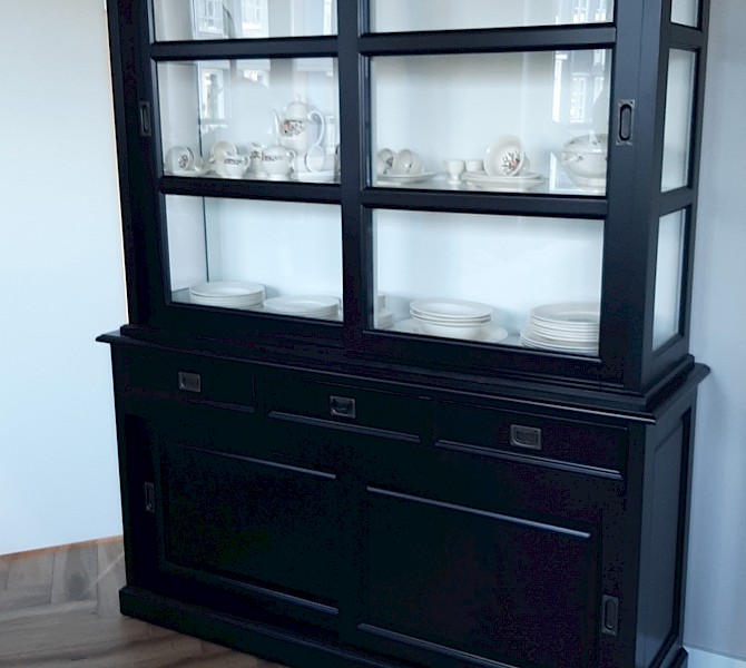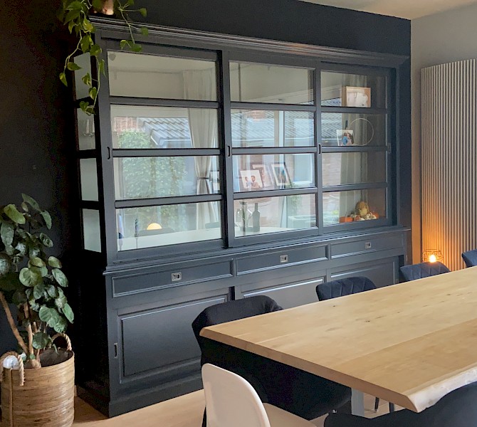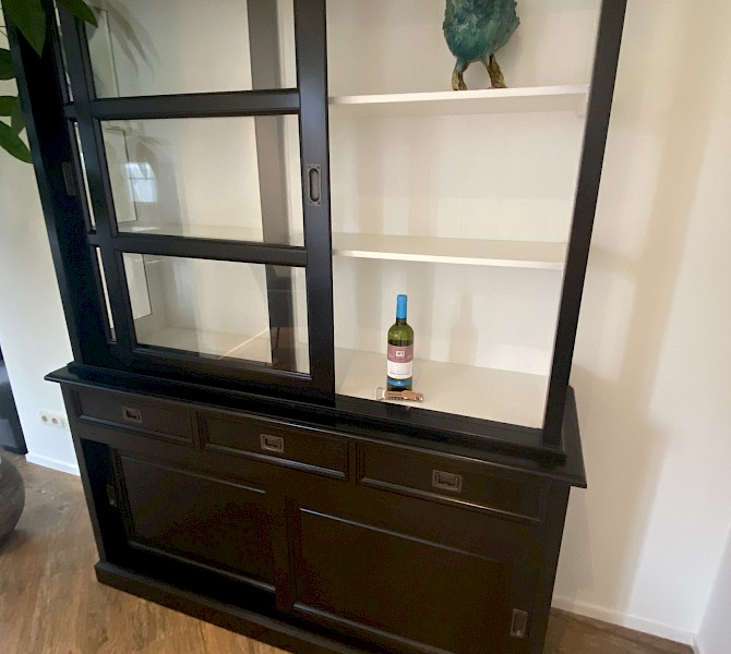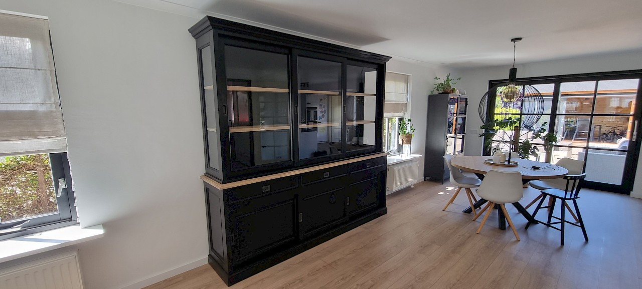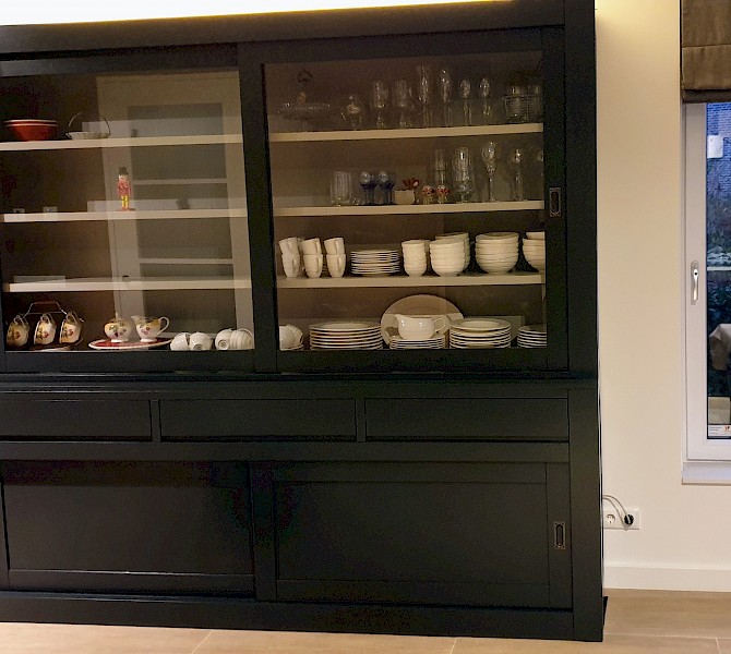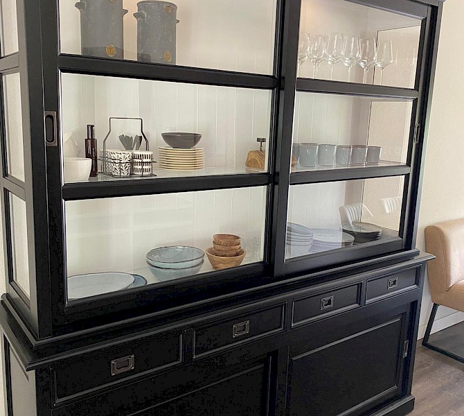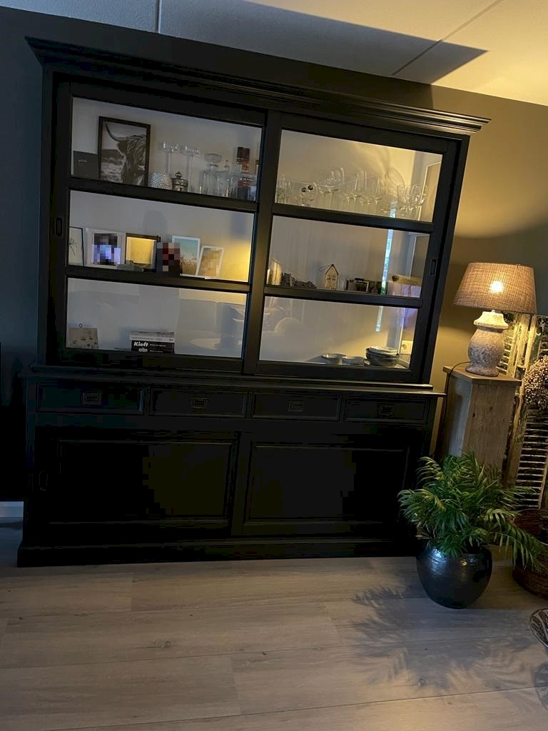 Hartelijk dank voor het bezorgen en plaatsen van de prachtige zwarte buffetkast. De deuren en lades glijden heel mooi en de kast is echt een Eyecatcher in onze woonkamer. Er past echt veel in en door het glas in de zijkant werkt alles optisch heel ruim en licht. We zijn er super blij mee!!