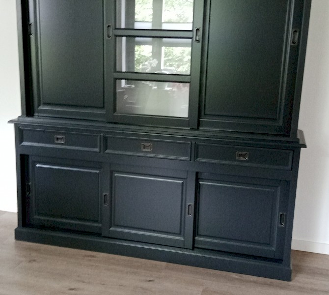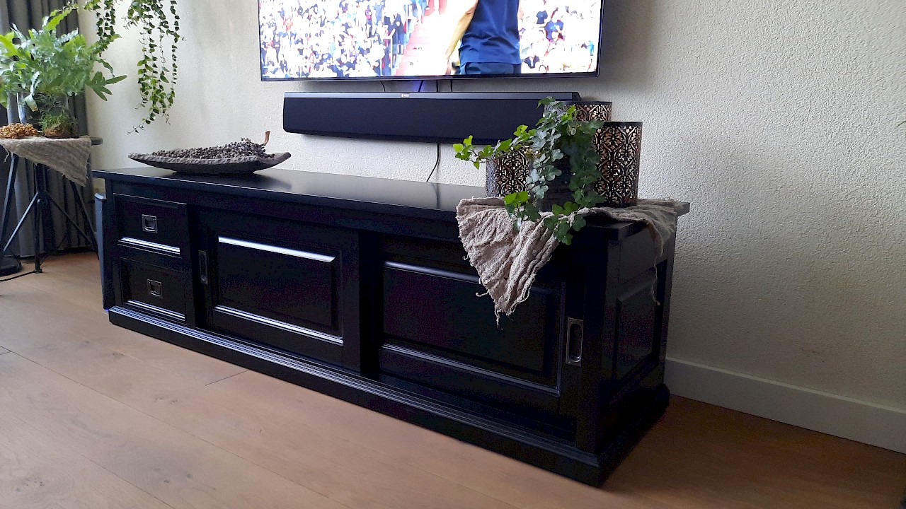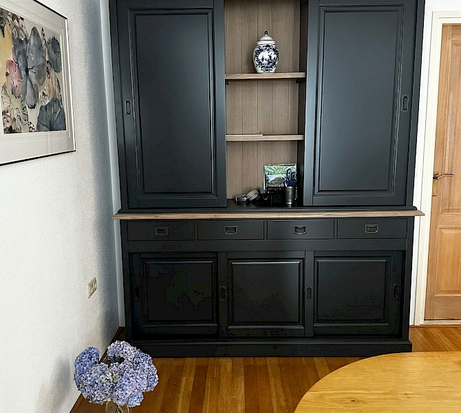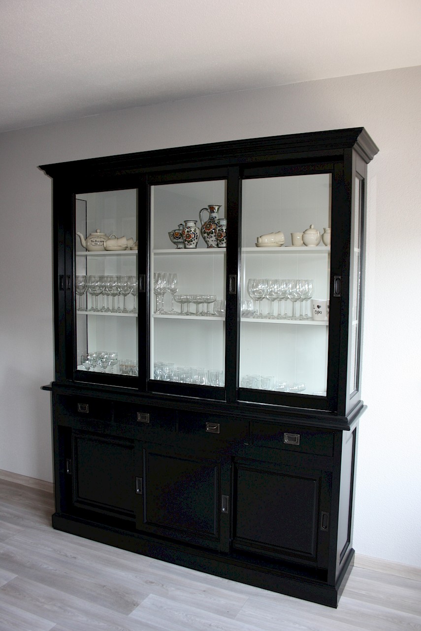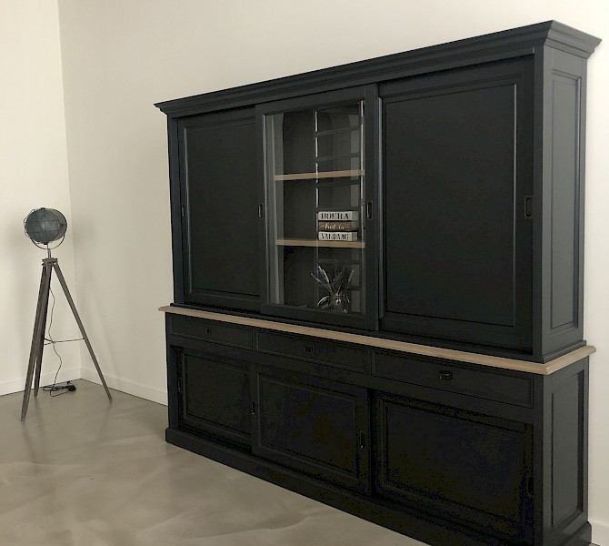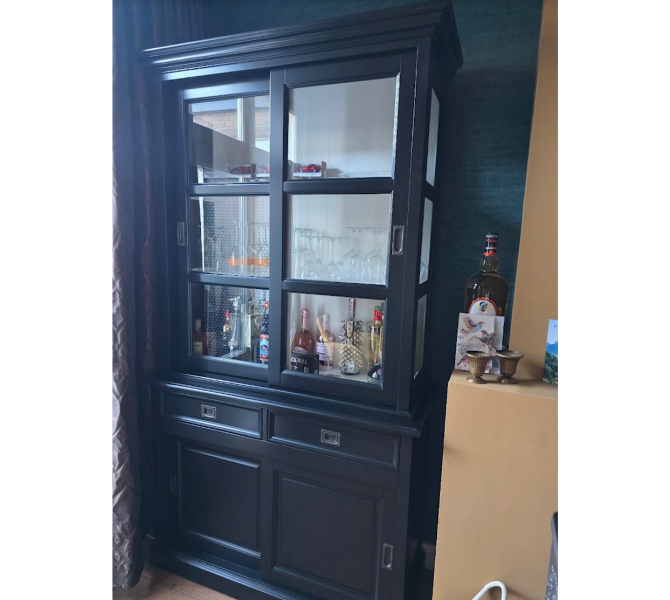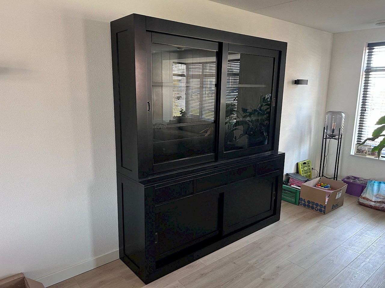 Hartelijk dank voor het bezorgen en plaatsen van de prachtige zwarte buffetkast. De deuren en lades glijden heel mooi en de kast is echt een Eyecatcher in onze woonkamer. Er past echt veel in en door het glas in de zijkant werkt alles optisch heel ruim en licht. We zijn er super blij mee!!