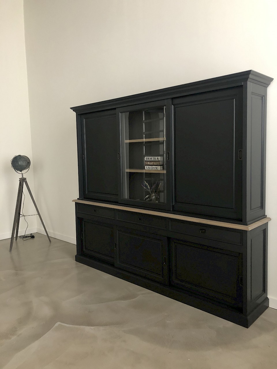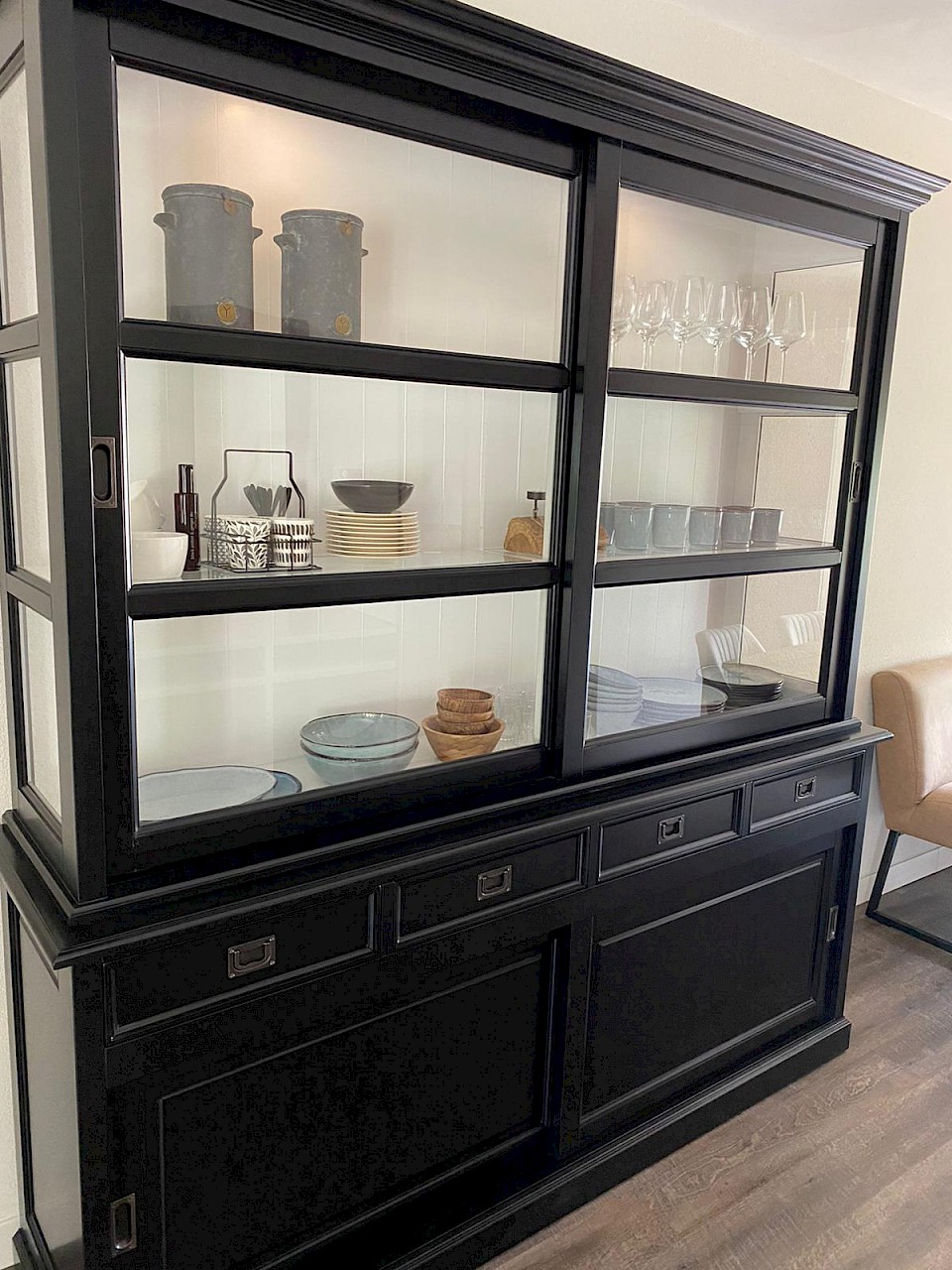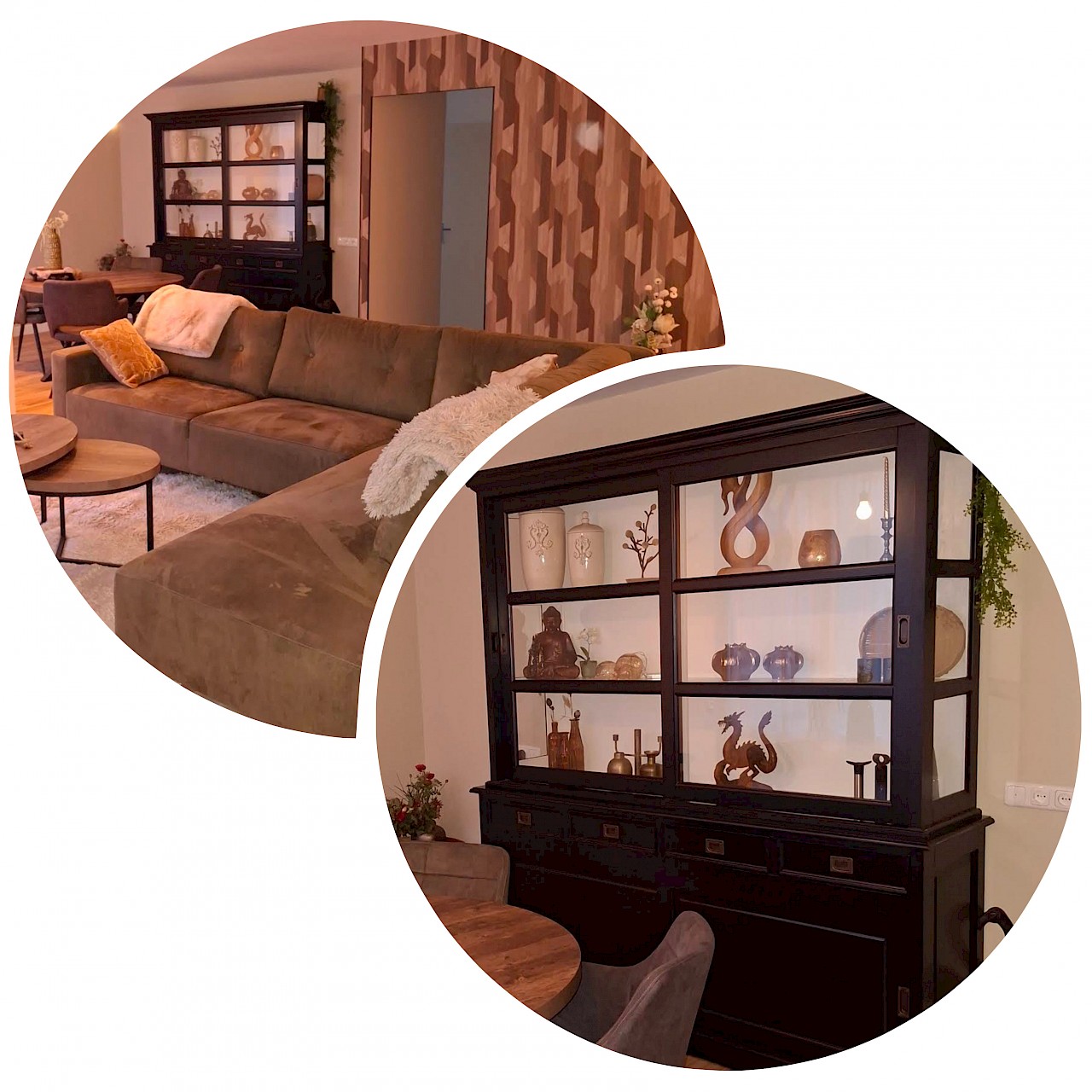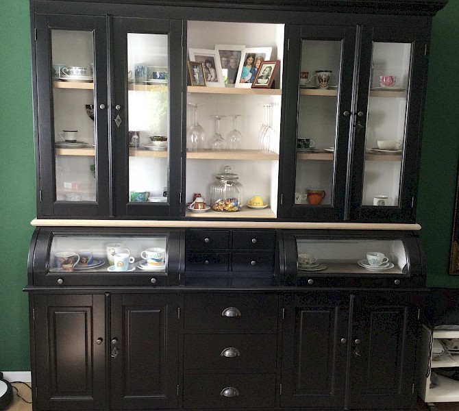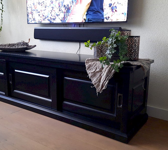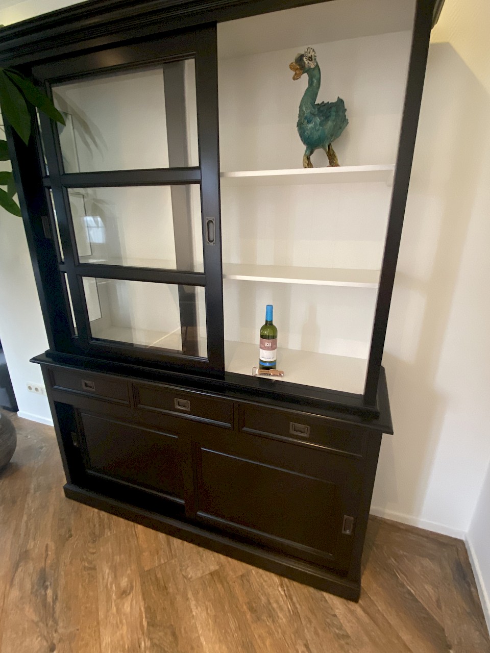 Hartelijk dank voor het bezorgen en plaatsen van de prachtige zwarte buffetkast. De deuren en lades glijden heel mooi en de kast is echt een Eyecatcher in onze woonkamer. Er past echt veel in en door het glas in de zijkant werkt alles optisch heel ruim en licht. We zijn er super blij mee!!