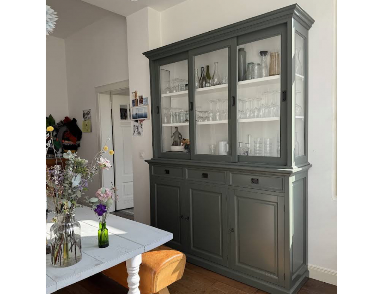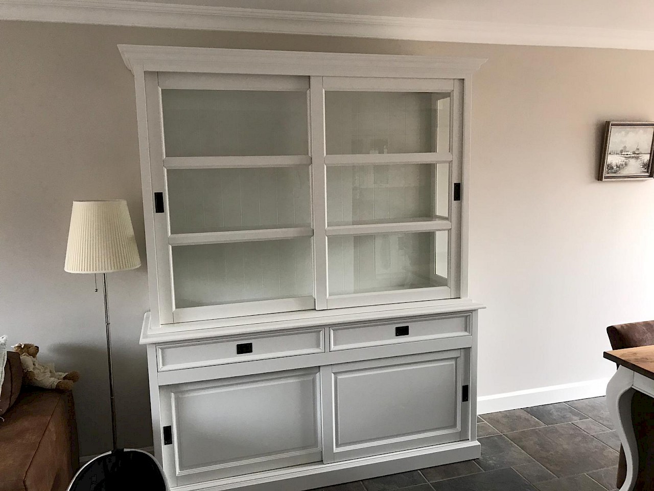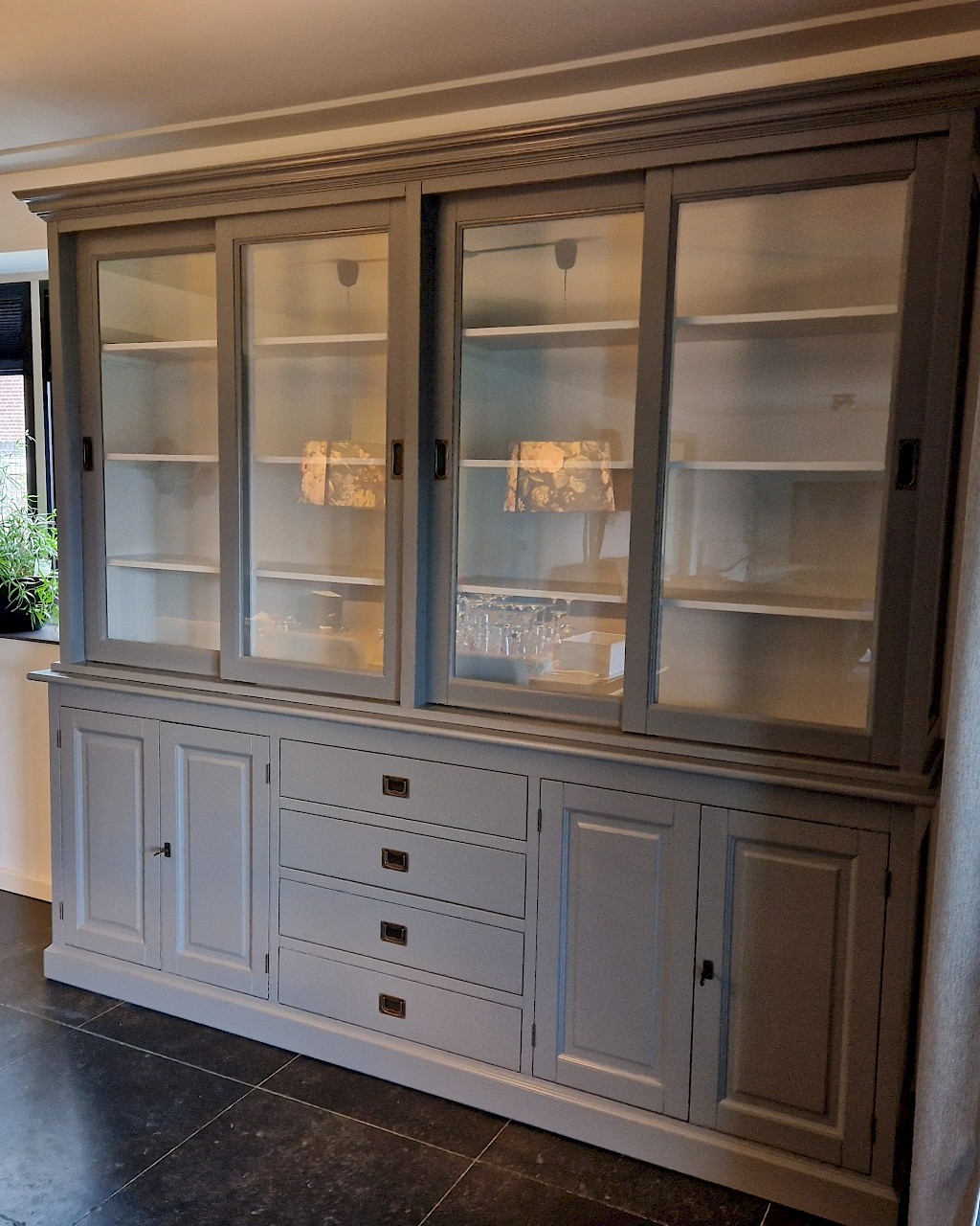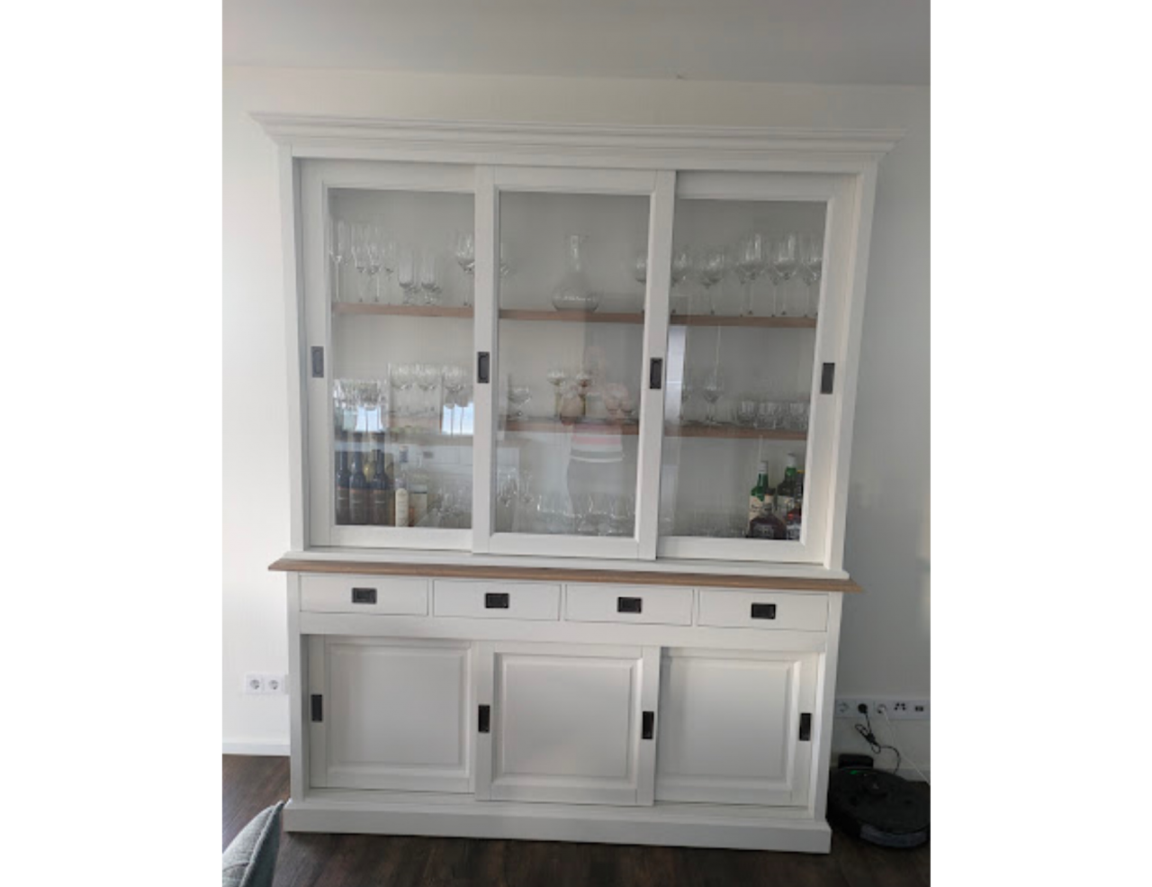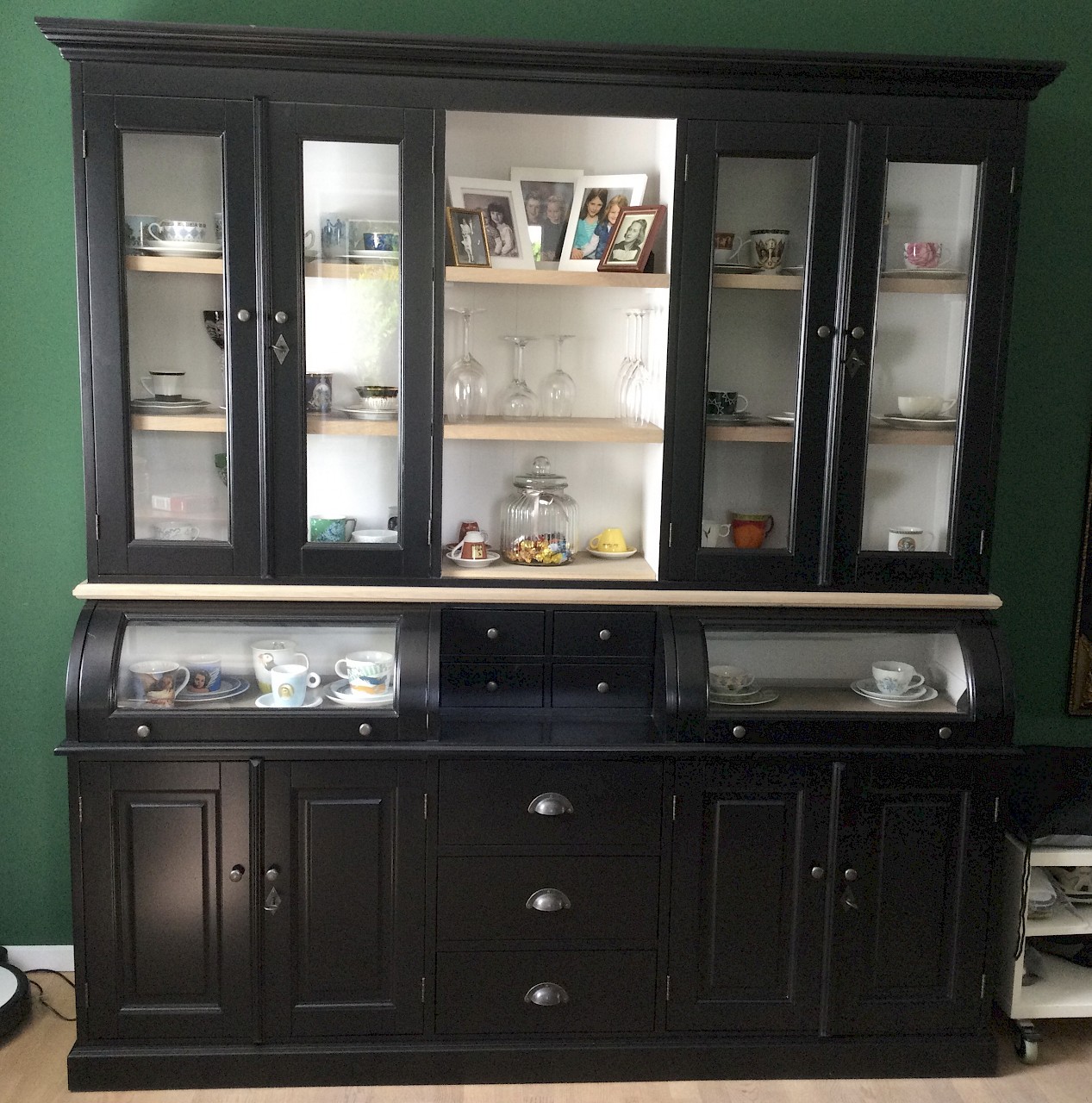 Hartelijk dank voor het bezorgen en plaatsen van de prachtige zwarte buffetkast. De deuren en lades glijden heel mooi en de kast is echt een Eyecatcher in onze woonkamer. Er past echt veel in en door het glas in de zijkant werkt alles optisch heel ruim en licht. We zijn er super blij mee!!