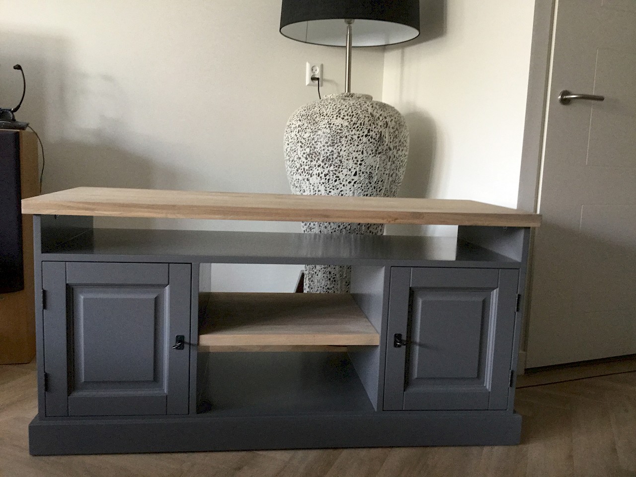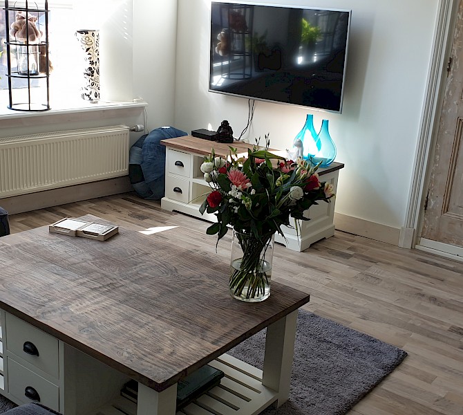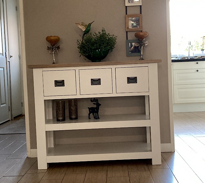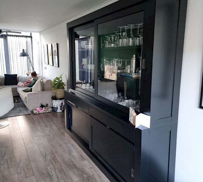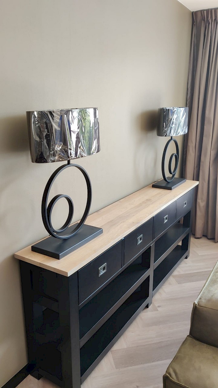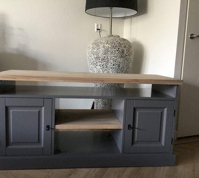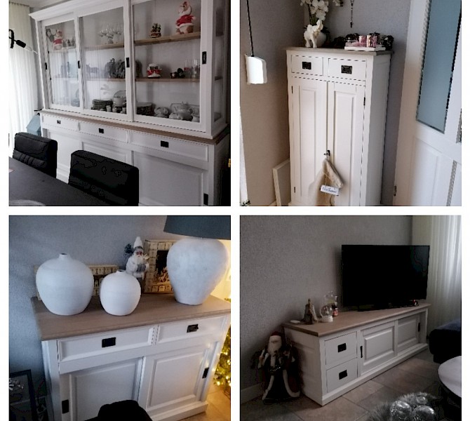 Bij toeval kwamen we op jullie site, daar stond de kast die ik bedoelde, alleen ik wilde hem een tikkie anders, zo ook bij de tv kast en de site table. Goeie service, super mooi geworden, netjes afgeleverd. Wij zijn er super blij mee. Dank jullie wel
