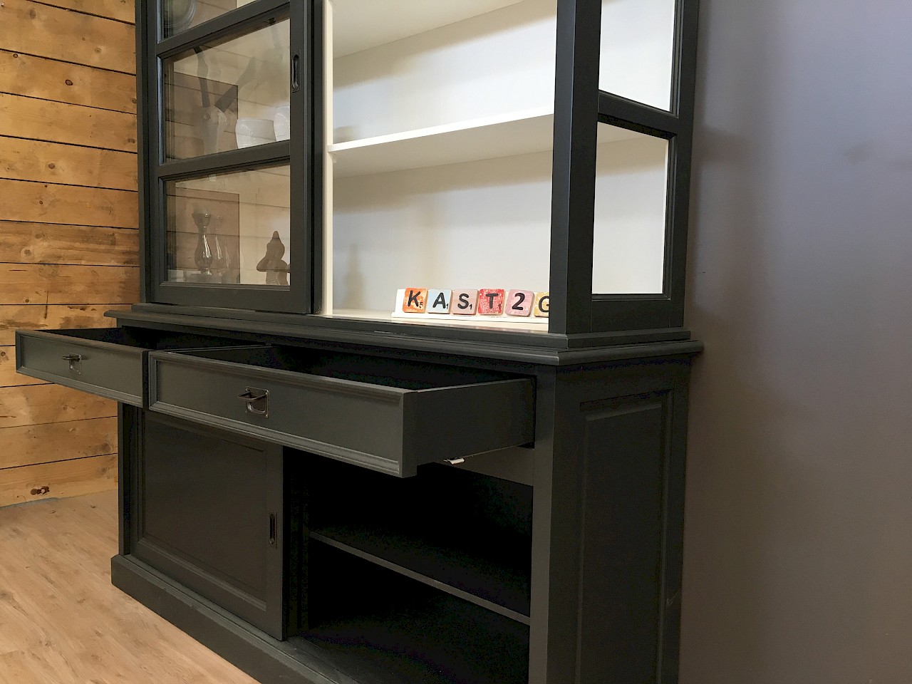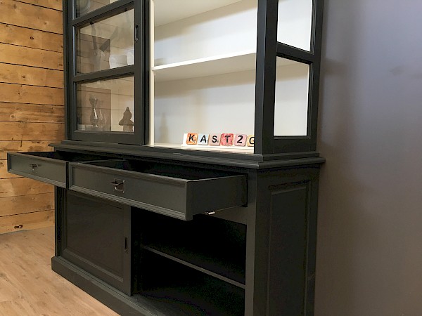 Dieses schöne  Buffetschrank Degen 180 Meter in antraciet kann der Hingucker in Ihrem Wohnraum sein! Ein zeitloser Look, der sowohl in ein modernes als auch in ein klassisches Interieur passt. Der Schrank enthält zwei Schiebetüren, oben und unten, sowie eine Reihe von Schubladen. Die Herstellung erfolgt mit hoher Qualität, die Schubladen sind sanft schließend und die Schiebetüren hängen in Aluminiumschienen, laufen fließend und schweben sozusagen. Dieser schöne Schrank besteht aus zwei Teilen und ist somit leicht zu transportieren.