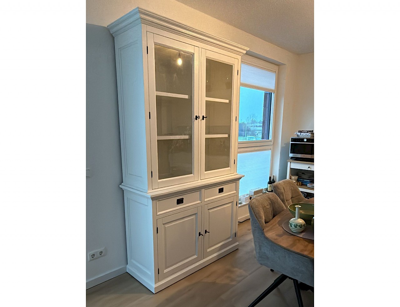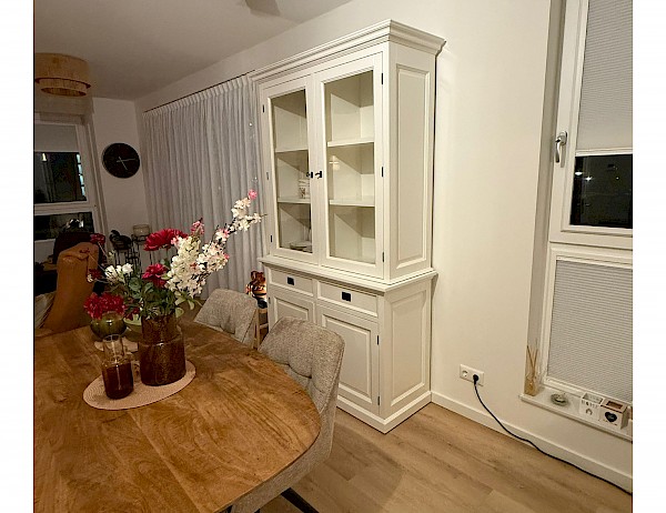 Dieses schöne weiße Buffetschrank/vitrinenschrank London 130 kann der Hingucker in Ihrem Wohnraum sein! Ein zeitloser Look, der sowohl in ein modernes als auch in ein klassisches Interieur passt. Der Schrank enthält zwei Türen, oben und unten, sowie eine Reihe von Schubladen. Die Herstellung erfolgt mit hoher Qualität, die Schubladen sind sanft schließend. Dieser schöne Schrank besteht aus zwei Teilen und ist somit leicht zu transportieren.